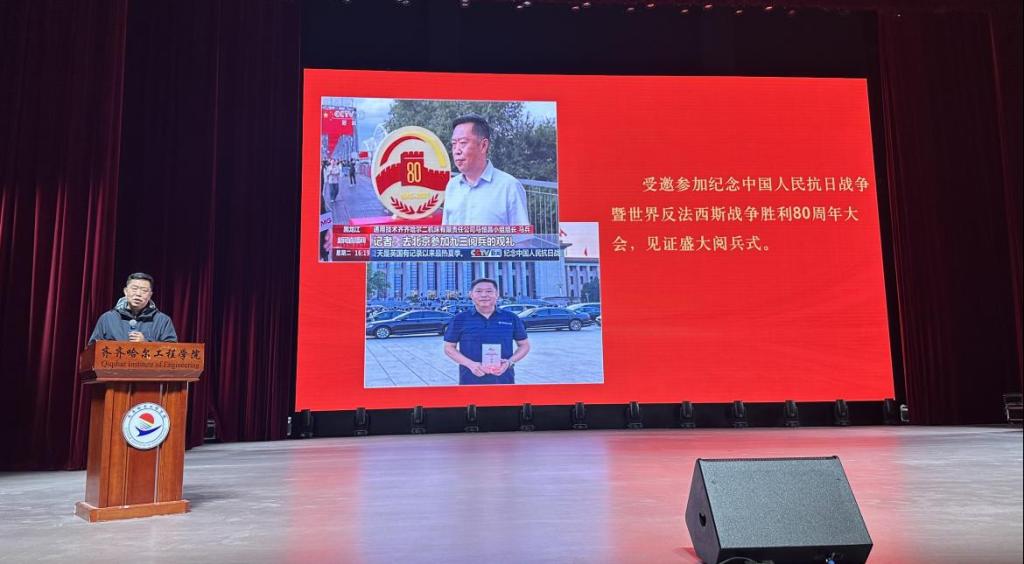 马兵以“传承红色基因,争做新时代机电工匠”为主线,运用鲜活案例与亲身经历,为学生构建起“精神传承、技术突破、使命担当”三位一体的认知框架。他从机械行业发展现状与技术创新趋势切入,结合自身数十年的一线实践,系统剖析了专业发展的未来前景。在展示齐齐哈尔二机床有限责任公司核心产品的同时,他结合企业服务航空航天等国家重点领域的实际案例,使学生直观感受到机械行业在国家产业体系中的关键地位。